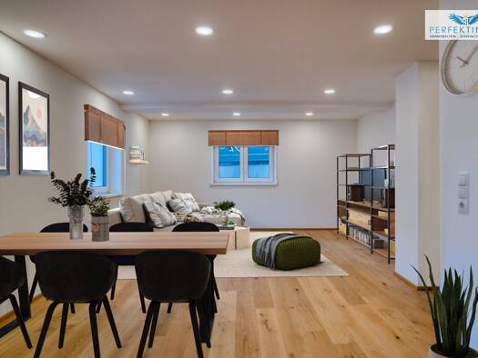 Die Dreizimmerwohnung besticht durch ihren offenen, modernen Grundriss, der eine harmonische Verbindung zwischen Wohn-, Essbereich und Küche schafft. Die hochwertige Ausstattung, gepaart mit warmen H...