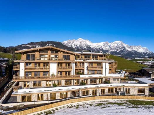 Mit den "Söllvida Residences" ist 2023 an diesem sonnigen Platz ein prachtvolles Projekt mit 46 Apartments im modern ländlichen Stil erbaut worden. Der Blick in die umliegende Bergwelt ist bezaubernd...