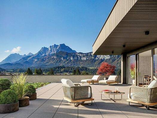 Diese außergewöhnliche Penthousewohnung begeistert mit einer harmonischen Kombination aus hochwertigsten Materialien und einer unvergleichlichen Aussicht auf den Wilden Kaiser und das Kitzbüheler Hor...