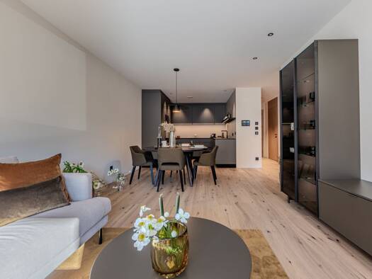 Diese hochwertige Obergeschosswohnung überzeugt durch eine durchdachte Raumaufteilung und einen attraktiven Ausblick. Der offen gestaltete Wohn- und Essbereich bildet das Herzstück der Wohnung und bi...