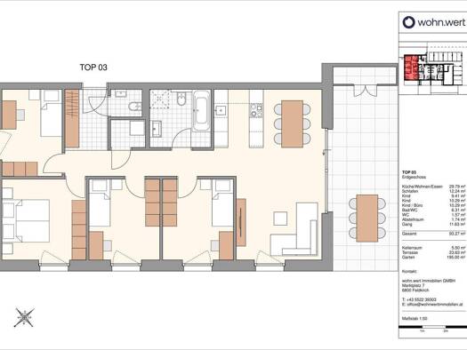 3 Zimmer-Gartenwohnung | Terrasse | Götzis | Modern Die Gartenwohnung begeistert mit einer durchdachten Raumaufteilung und einer großzügigen Nutzfläche von 77,42 m². Highlight ist die weitläufige, pr...