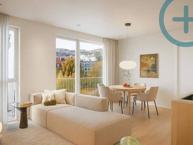 Vermietet bis Ende 2026. Diese wunderschöne Neubauwohnung beeindruckt durch ihre intelligente Raumaufteilung, mit einem offenen Wohn- und Essbereich, der kulinarische Genüsse und geselliges Beisammen...
