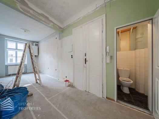 Die revitalisierte Wohnung befindet sich im 5 Stockwerk (ohne Lift). Die Wohnung hat ein Vorraum-Küchenbereich, WC, Bad mit neuer Duschkabine und ein Zimmer. Die Wohnung verfügt über eine Elektroheiz...
