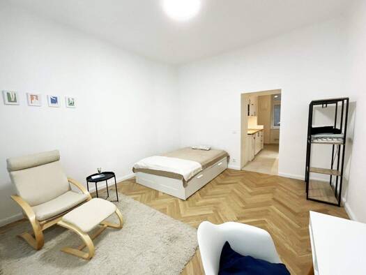 In einem kürzlich revitalisierten Gründerzeithaus (Baujahr 1900), das sich durch eine hervorragende Infrastruktur und eine ruhige Lage auszeichnet, steht eine vollständig sanierte 1-Zimmer-Wohnung mi...
