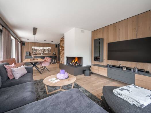 Diese exklusive Maisonette-Wohnung im Erdgeschoss begeistert mit einem traumhaften Blick auf das Kitzbüheler Horn sowie den Wilden Kaiser und bietet auf 145 m² alles für ein luxuriöses, entspanntes L...