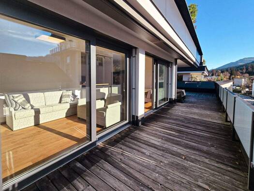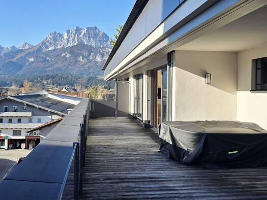 Modernes Penthouse in St. Johann in Tirol mit ca. 90?m² Wohnfläche, offener Wohn-/Essbereich mit Galerie und zwei Balkonen (28?m²). Genießen Sie den Südwest-Blick auf Wilder Kaiser & Kitzbüheler ...