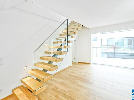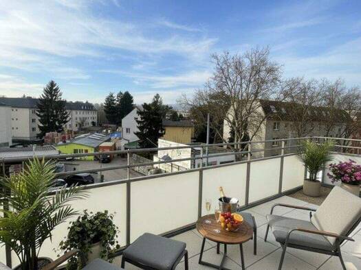 Moderne Terrassenwohnung mit außergewöhnlicher Raumhöhe - Ruhig gelegen, nach hinten gartenseitig ausgerichtet, öffnet sie sich zu einem geschützten, grünen Rückzugsbereich. Diese besondere 3-Zimmer-...