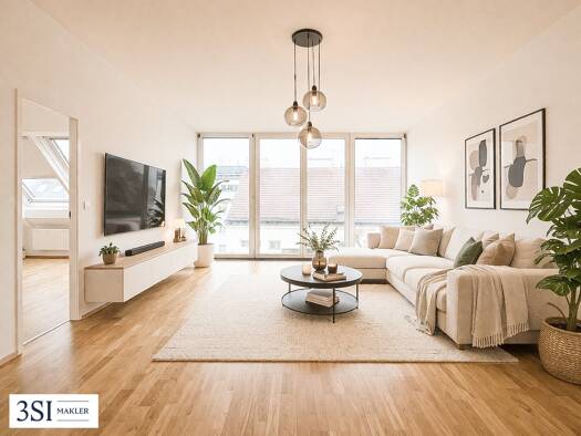 Valmacor Objekt Nr. 3358/2028 Dieses und weitere Angebote auf www.VALMACOR.at Zum Verkauf gelangt eine großzügige 3-Zimmer-Dachgeschoss-Maisonette mit rund 136 m² Wohnfläche und zwei sonnigen Terrass...