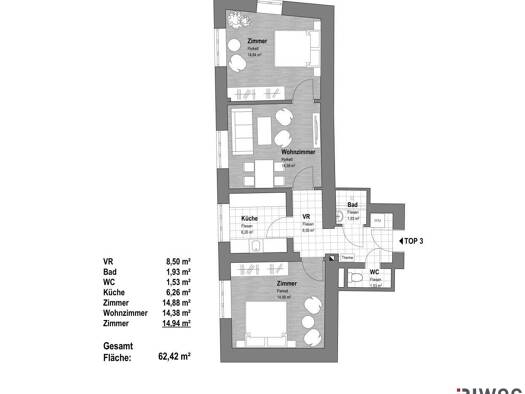 **Wohnfläche** 63,42 m² **Terrasse** 33,50 m² (über die gesamte Länge der Wohnung) **Kaufpreis** EUR 640.000,-- (privater Verkauf, keine Maklerprovision) **Verfügbar ab** März 2026 Beschreibung: Dies...
