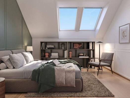 4 Zimmer mit Kaminofen, Loggia, Balkon: Wohnen wie im Park - Leben wie in der Stadt Naturgenuss mit City-Anschluss * Erhaben: 114 m² Wohnfläche im 3. und letzten Liftstock * Feines Wohngefühl: Loggia...