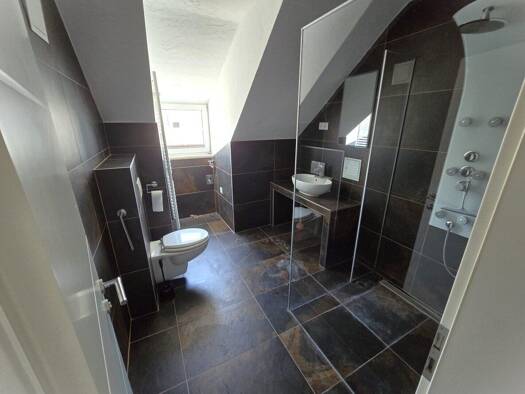 Dieses charmante Dachgeschoss in Schwechat bietet auf 135 m² Wohnfläche einen vorteilhaften Grundriss auf 2 Ebenen. Die großzügige Dachterrasse lädt zum Entspannen ein, während Vollholzmöbel und Eich...
