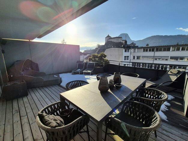 Willkommen im City Living Kufstein – diese Penthouse-Wohnung vereint urbane Lage mit außergewöhnlicher Privatsphäre und großzügigen Außenflächen. Auf ca. 135,55 m² Wohnnutzfläche erwartet Sie ein dur...