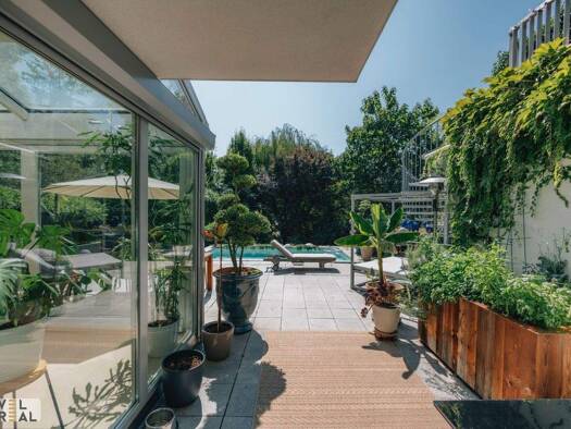 FREISTEHENDES WOHNEN MIT LUXURIÖSEM EINFAMILIENHAUS-CHARAKTER. EINLIEGERWOHNUNG | SONNENTERRASSE | POOL | GARTEN | TIEFGARAGE In einer der begehrtesten Wohnlagen Wiens, eingebettet in die grüne, eleg...