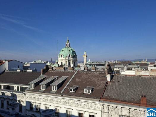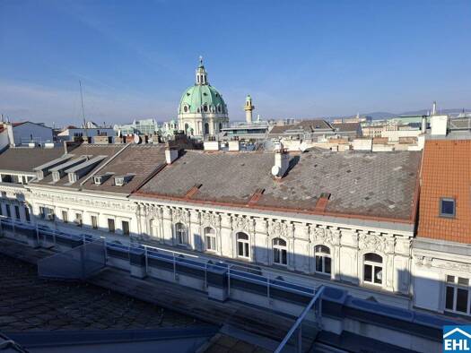 Kurzbeschreibung Blick zur Karlskirche - Dachgeschoßtraum mit 5 Zimmern und Terrassen Großzügige Maisonette-Wohnung im herrschaftlichen Palais Objekt Blick zur Karlskirche - Dachgeschoßtraum mit 5 Zi...