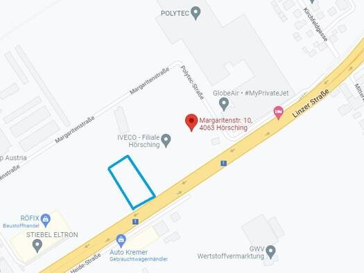 Grundstück mit B Widmung direkt an der B 1 in Hörsching. Kein Bebauungsplan Zuführt von der Rückseite (wie bei Polytec). Nur langfristige Verfügbarkeit sinnvoll - mindestens 30 Jahre bis maximal 99 J...