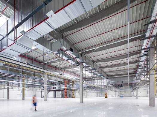 Das neu errichtete Kühl- und Tiefkühllager bietet auf rund 2.727 m² zwei Kühlhallen mit monolithischem Betonboden. Zwei temperierbare Andockzonen mit Rolltoren und aufblasbaren Dockdichtungen gewährl...