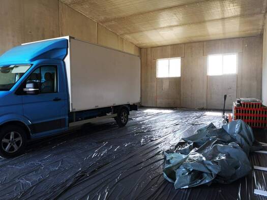 Eine Halle mit mehreren Schiffen aber durchgängig mit MB Widmung. Höhe zwischen 4,50 und 6 Meter. Es gibt auch eine kleine Werkstatt in der Halle, Aufenthaltsräume und Toiletten. Die linke Halle wurd...