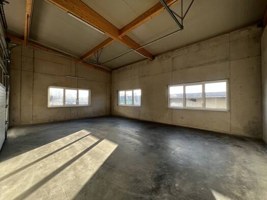 Zur Vermietung gelangen rund 982 m² Hallenflächen (Edelrohbau), nutzbar als Gewerbefläche, Lager, Auslieferungsstandort oder auch als Verkaufsgeschäft. Die Liegenschaft weist ein großzügiges Parkplat...