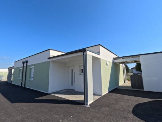 BUNGALOW # ALLES AUF EINER EBENE # PHOTOVOLTAIK ZUM HAUS Leistbar und barrierefrei wohnen im stylischen Bungalow. Rundum sind Sie hier umgeben vom herrlich milden pannonischen Klima und den sanften H...
