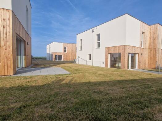 Miete mit Kaufoption, Erstbezug, Fertigstellung Oktober 2025! Hier wurden 16 Doppelhaushälften mit großzügigen Freiflächen errichtet. Die Erschließung der Reihenhäuser erfolgt über überdachte Eingang...