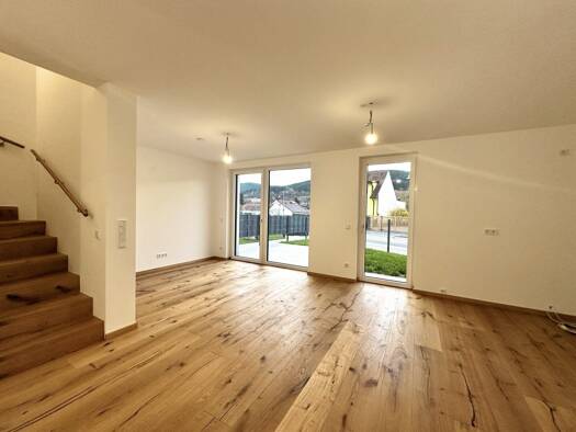 Die frisch fertiggestellten Reihenhäuser in ökologischer Holzbauweise richten sich an Familien, die modernes Wohnen mit Natur verbinden möchten. Eingebettet in eine grüne Umgebung nahe dem Wiener Neu...
