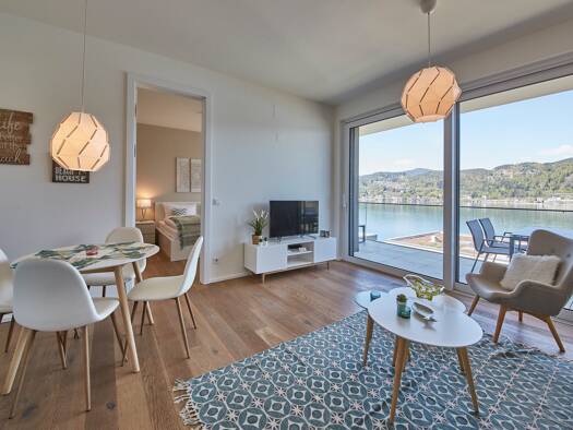 Brandneues Luxus Apartment in Maria Wörth am Südufer des Wörthersees - 7 Autominuten entfernt von Velden, 15 min von Klagenfurt. Die Wohnung liegt direkt am See und besteht aus einem Schlafzimmer mit...