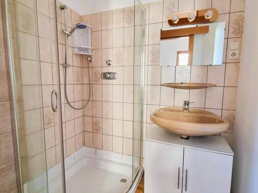 Es erwartet Sie eine gemütliche Garconniere im Erdgeschoss eines gepflegten Mehrfamilienhauses inmitten der reizvollen Landschaft zwischen den Gemeinden Altheim und Roßbach. Durch den Vorraum wird de...