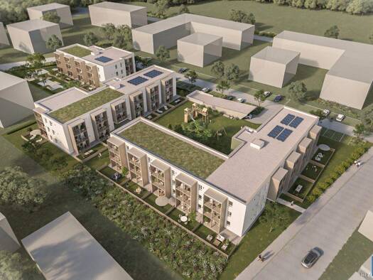 Die Wohnanlage umfasst 3 Wohnhäuser mit insgesamt 61 Mietwohnungen und Mietwohnungen mit Kaufoption, bestehend aus 34 kompakten Zweiraumwohnungen mit ca. 60 m², 21 geräumigen Dreizimmerwohnungen...