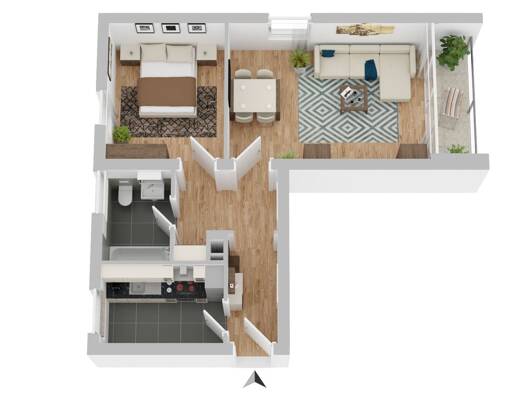 Objektbeschreibung Komfortabel eingerichtete und komplett ausgestattete Zwei-Zimmer-Wohnung Raumaufteilung Der Eigangsbereich führt direkt in den Küchenraum mit Einbauküche Einrichtung Siehe Fotos