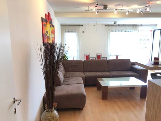 Das topmoderne Apartment lieg im 13. Stock eines vom Architekten Renzo Piano entworfenen Hochhauses. Special 1: Die Räume sind mit Originalgemälden einer bekannten österreichischen Malerin ausgestatt...