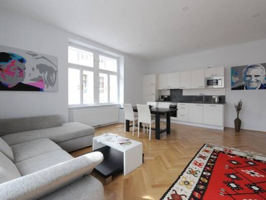 Das geräumige 55 m² große, stylische Premium-Apartment befindet sich in einem stilvollen Gründerzeithaus im Zentrum Wiens direkt an der U2-Taborstraße. Das Apartment - besteht aus Wohnzimmer mit Park...