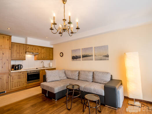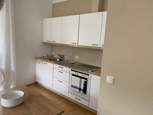 Diese helle, einladende und im Jahr 2019 generalsanierte Garçonnière besteht aus einem Wohnzimmer mit Doppelbett, einer Couch und eine Esszimmergarnitur. Darüber hinaus finden Sie für Ihren beruflich...
