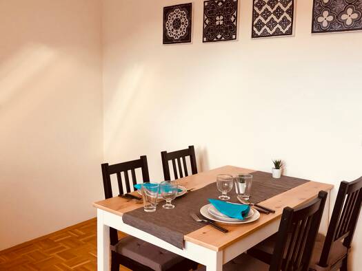 Modernes Apartment für 1-4 Personen (56 m²) im 4. Stock ohne Lift, gute Aufteilung (Schlafzimmer, Wohnzimmer mit Ausziehbett (140*200), getrennte Küche. Zentrale Lage (Lendplatz, Innenstadt, Volksgar...