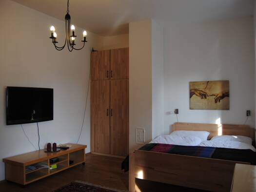 Das sehr geschmackvoll möblierte Apartment hat einen gemütlichen toll aufgeteilten Wohn-Schlafbereich, eingerichtet mit hochwertigen Möbeln einen Tisch für 4 Personen , Kleiderschrank , Sofa ,einem g...