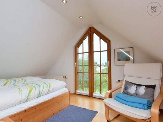 Die möblierte 3,5-Zimmer-Wohnung liegt außerhalb vom Ortsteil Oberdorf der Gemeinde Langenargen, im Hochparterre eines Einfamilienhauses mit eigenem Eingang und einem großen überdachten Süd-Balkon. I...