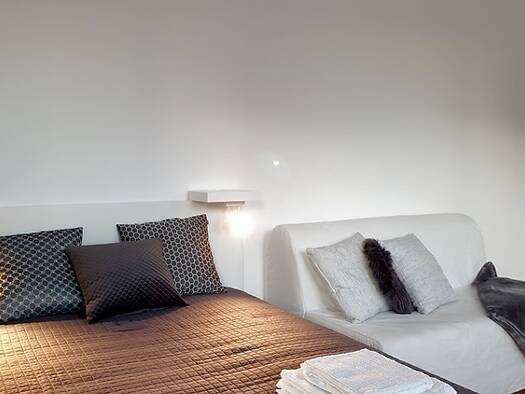 Unsere kleine und frisch renovierte Wohnung besteht aus einem Schlafzimmer mit einem Doppelbett und einem Wohnzimmer mit zwei Einzelbetten, welche auch als Sofa genutzt werden. Die Wohnung ist modern...