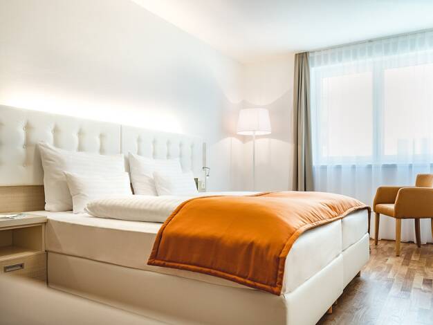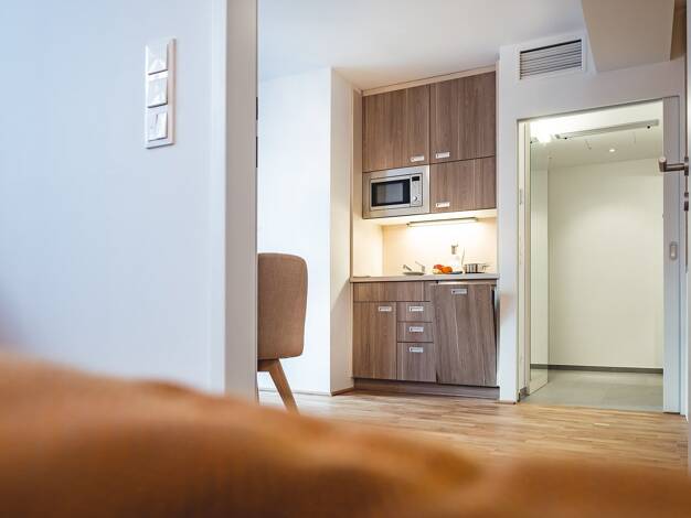 In diesen 30-35m² großen Appartements finden Sie, neben dem separaten Schlafzimmer, auch noch einen Wohnraum mit Ess- und Schreibtisch, einer voll ausgestatteten Kitchenette (inklusive Geschirrspüler...