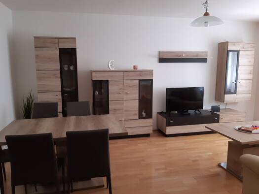Helle Nichtraucher Wohnung mit Wohnzimmer, Schlafzimmer, Küche, Bad, WC, Vorraum und Abstellraum. Die Wohnung ist zum teil neu möbliert und auf das Wesentlichste reduziert. Die Küche ist mit Geschirr...
