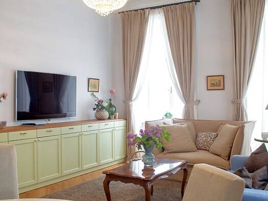 In der Belle-Etage eines Gründerzeithauses, exklusiv restauriert und liebevoll möbliert, zentral gelegen, an kleinem Platz mit Park, 2 min. zur U-Bahn, 10 min. zu Fuß ins Zentrum und zum Naschmarkt. ...