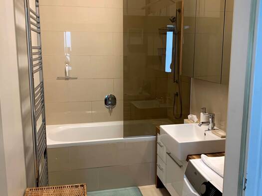 Die gemütliche Wohnung besticht durch die moderne und zeitlose Ausstattung. Man betritt die Wohnung durch eine klassische doppelte Holztüre. vom Gang aus erreicht man das gemütliche Schlafzimmer, das...