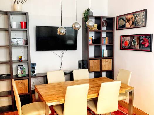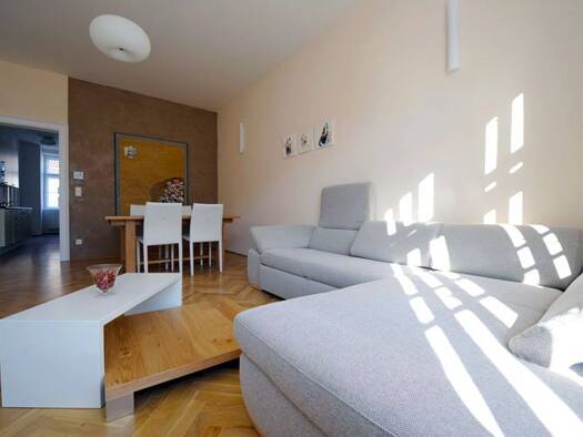 Wunderschöne, frisch sanierte Wohnung in einem Wiener Altbau. Großzügiger Wohn-Essbereich mit Esstisch und komfortabler Couch für ein gemütliches Beisammensein. Im Schlafzimmer befindet sich ein King...