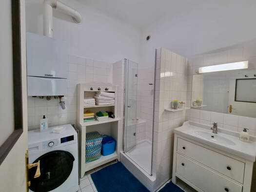 Das geräumige Apartment befindet sich im 3. Stock (kein Lift), es liegt sehr ruhig und hell (sonnig). Die Fenster des Salons (Wohn- und Schlafraum) gehen in einen ruhigen, begrünten Innenhof, die Fen...
