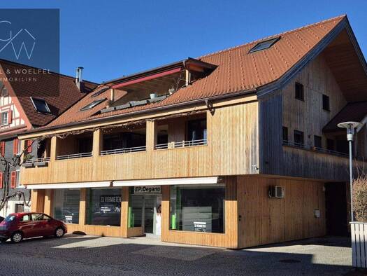 Neubauprojekt Hohenems:Erstbezug Gewerbe zur Miete! Das Wohn- und Geschäftshaus befindet sich an der gut frequentierten Diepoldsauer Straße mit bester Verkehrsanbin...