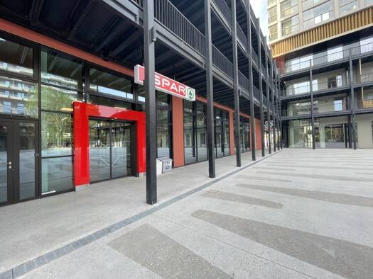 Die Quartiersentwicklung VILLAGE IM DRITTEN umfasst nicht nur verschiedenste Wohnmodelle, Grünflächen und ein Bürohaus, sondern bietet ebenfalls Geschäftsflächen im Erdgeschoss und 1. Obergeschoss de...