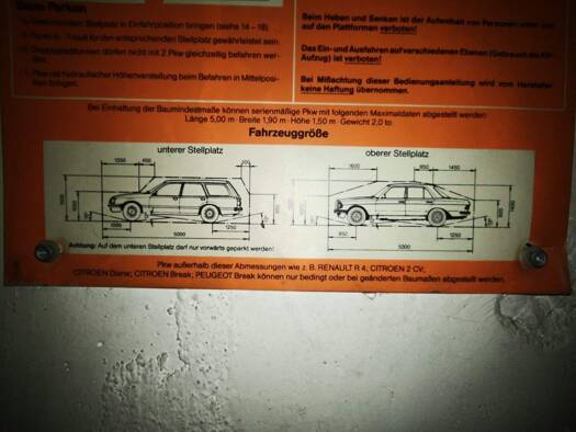 Tiefgaragenstellplatz für Klein bis Mittelklassefahrzeuge in einer trockenen Tiefgarage BJ 1993 eines Wohnhauses: Hebebühnentechnik - derzeit SIND ZWEI UNTERE und EIN OBERER Stellplätze verfügbar! Ko...