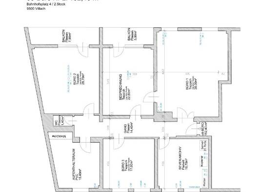 Bürofläche Villach-Zentrum: Lage: Zentrale Lage direkt am Villacher Bahnhofplatz. Die Einheit liegt west- bzw. ostseitig im 6. Obergeschoss mit Lift. Raumaufteilung: Empfang / Sekretariat, 3 Büroräum...