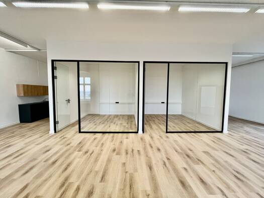 Die bezugsfertigen Räume können ab sofort angemietet werden. Die Nutzfläche von ca. 86 m² teilt sich wie folgt auf: Ein großzügiger Empfangsbereich, drei geräumige Büroräume, ein größerer Sozialraum ...