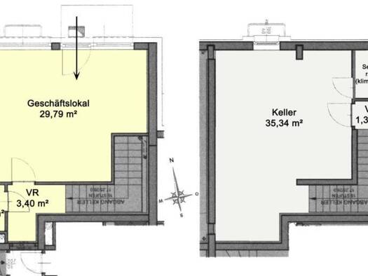 gesamt ca. 72 m² auf Straßenniveau: ca. 30 m² Geschäftslokal, 1 Vorraum, 1 WC Keller: 1 Vorraum, ca. 35 m² Lagerkeller inkl. klimatisiertem Serverraum 2 KFZ-Stellplätze im Freien Nettomiete: mtl. € 6...