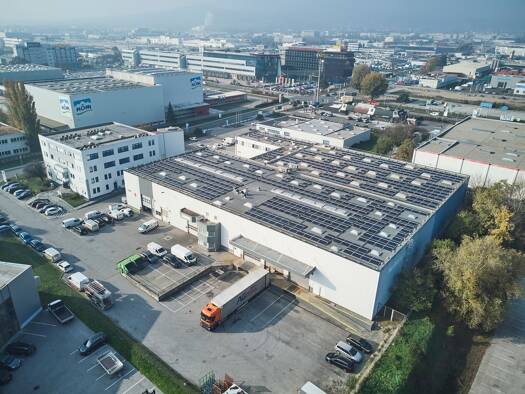 Das 4-geschoßige, funktionelle Bürogebäude ist von den Lagerhallen räumlich getrennt. Es verfügt über einen Haupteingang (für Erdgeschoß und 1. OG) und einen speziellen für einen Mieter in den oberen...