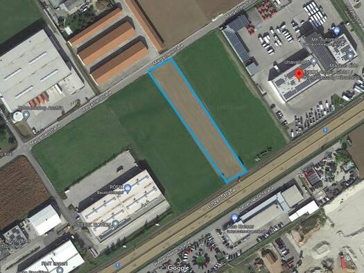 Ein Grundstück mit B - Widmung, gut zufahrbar und grenzt an die B 1. Man wird also auch gut gesehen. Das Grundstück ist 32 Meter breit und 156 Meter lang. Es werden dort Hallen gebaut und im 1. OG Bü...